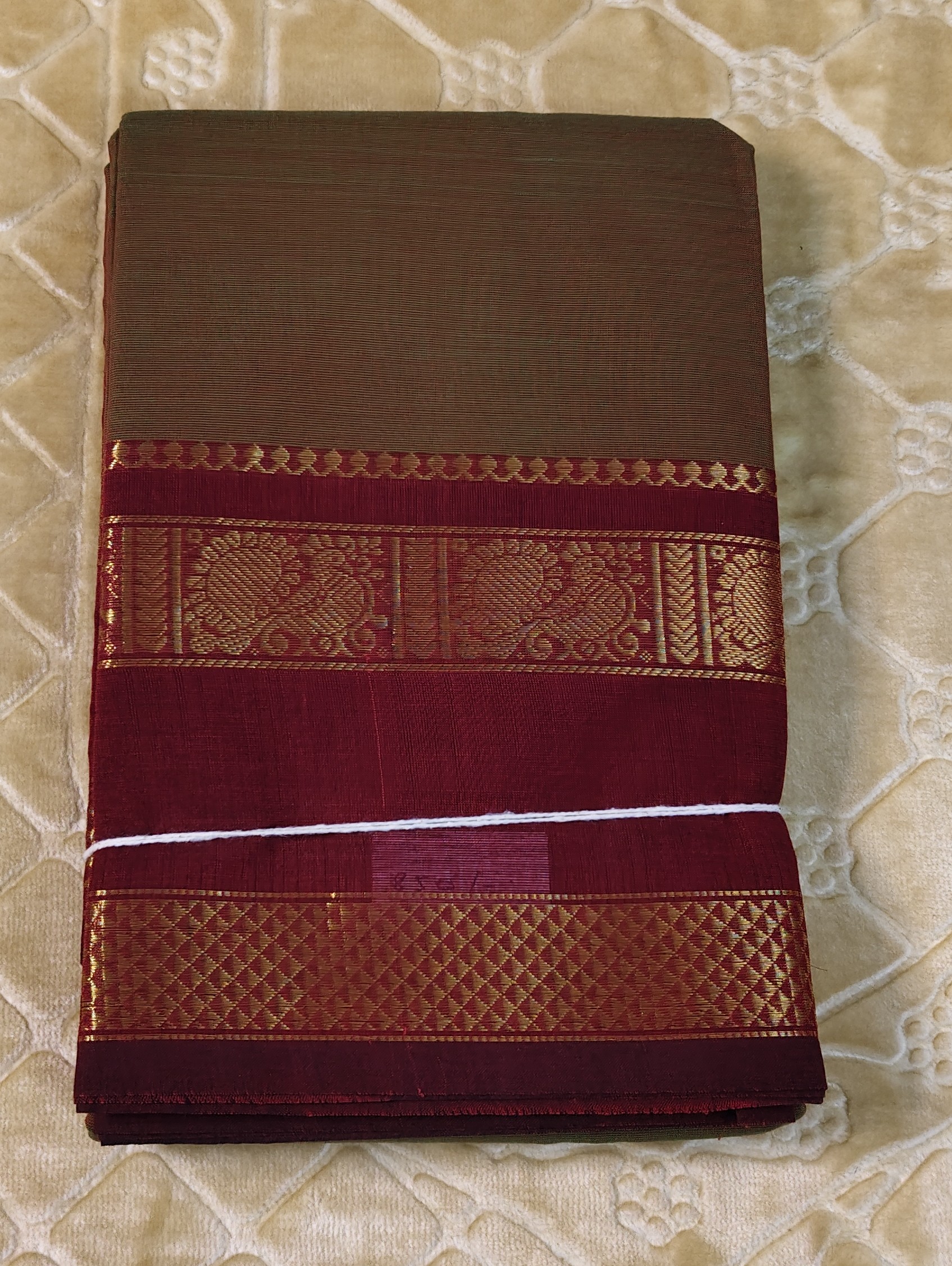 Chettinad Cotton Saree – Mehandi Green with Golden Jari Border