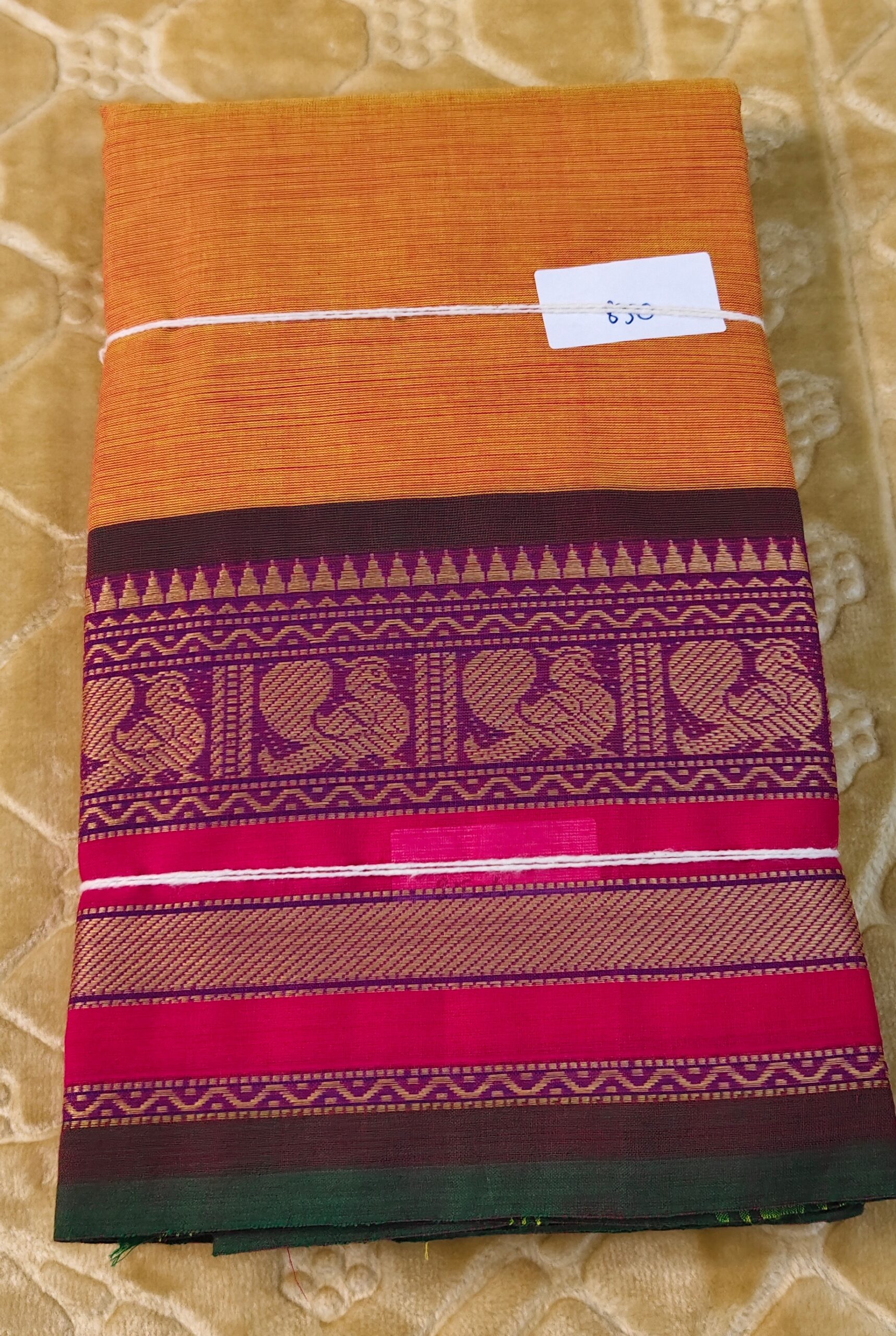 Chettinad Cotton Saree – Yellow with Annam Butta Thread Border